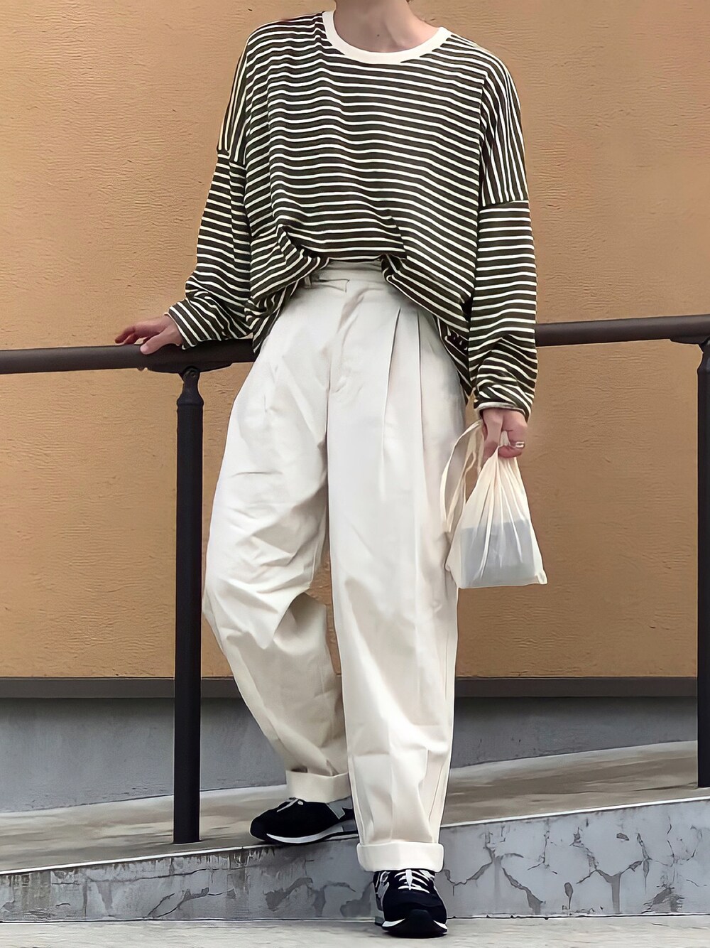 こんばんは🌆 ボーダーロンT一枚持っとくと便利。 白パンツ久しぶり Instagramもよろしくお願います♪