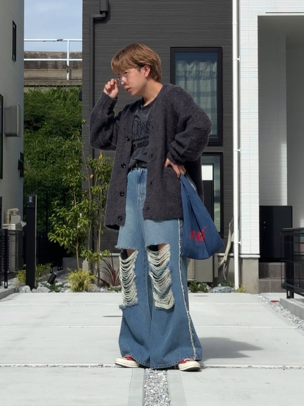 秋に着たいNo. 1 モヘアカーディガン さらっと着こなしたいですよね🙆♂️ 淡いデニムと赤って合いますよね 割と好きです