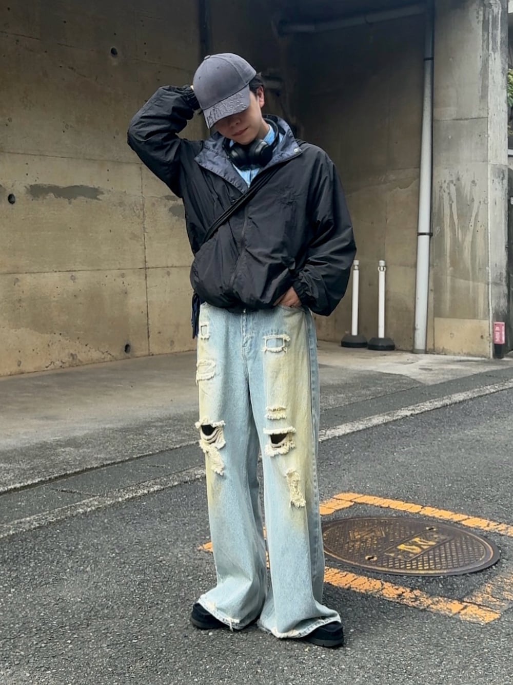 みっち~のデニムパンツ「damage denim pants」を使ったコーディネート