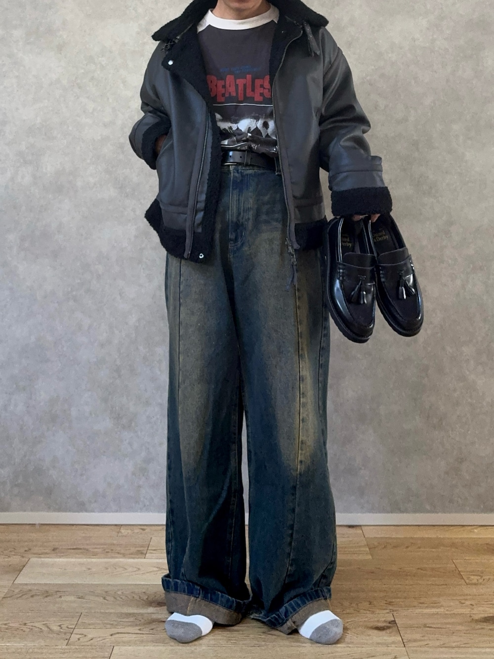 いつも見ていただきありがとうございます🙇 低身長男子でもお洒落をモットーに投稿してます ◯おすすめポイント◯  ̄ ̄ ̄ ̄ ̄ ̄ ̄ ̄ ̄ ̄ レザー✖︎デニムで渋さを その中にロゴTシャツで可愛さも 足元は珍しく革靴で👞 Instagramもやってるので是非⇩⇩⇩ @みっち〜