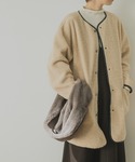 ノーカラージャケット (ベージュ系)ノーカラージャケット