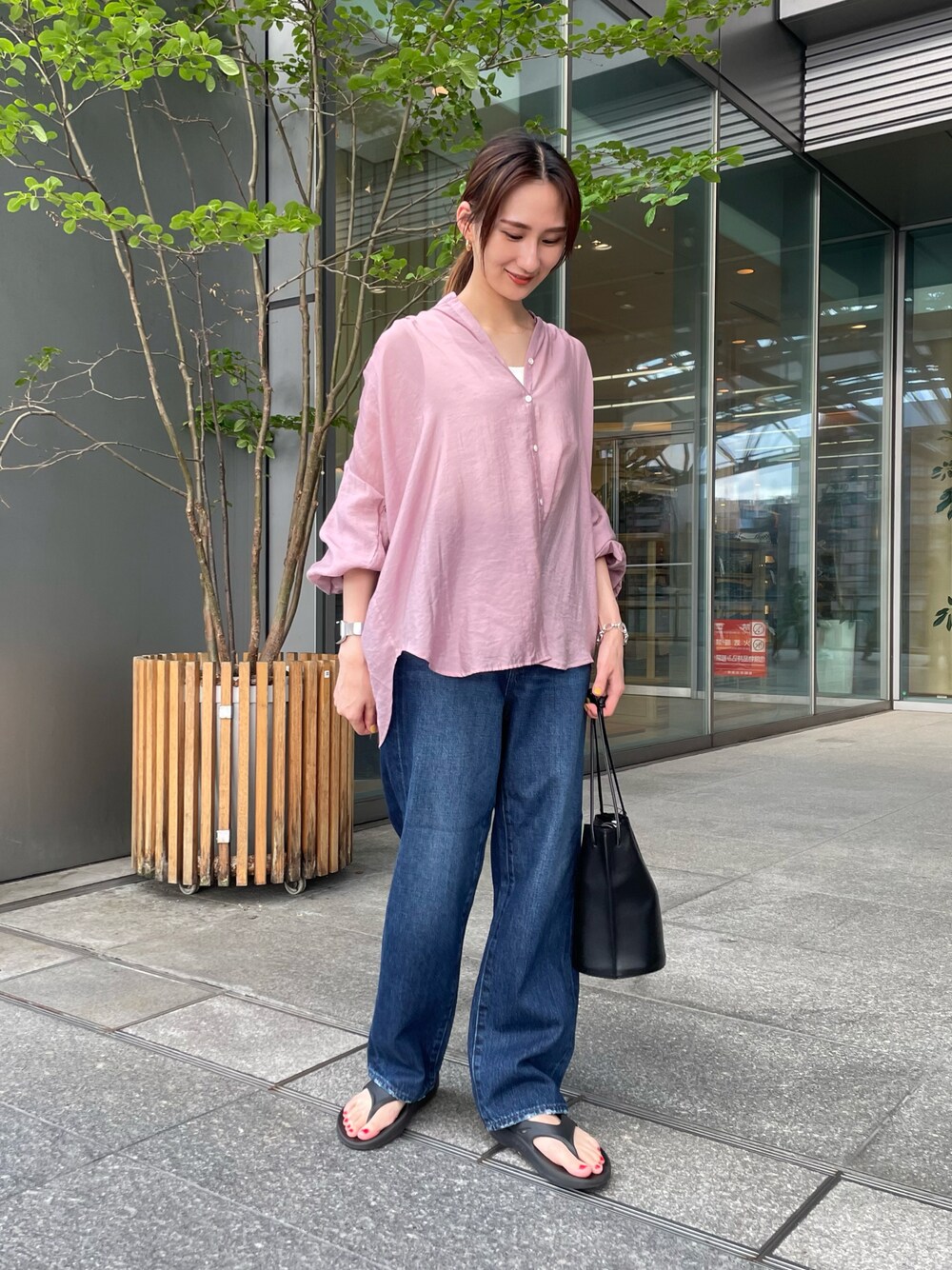 momoka(URBAN RESEARCH アミュプラザ博多)のデニムパンツ「『別注』PICCADILLY×URBAN RESEARCH オーガニックコットンワイドデニム」を使ったコーディネート