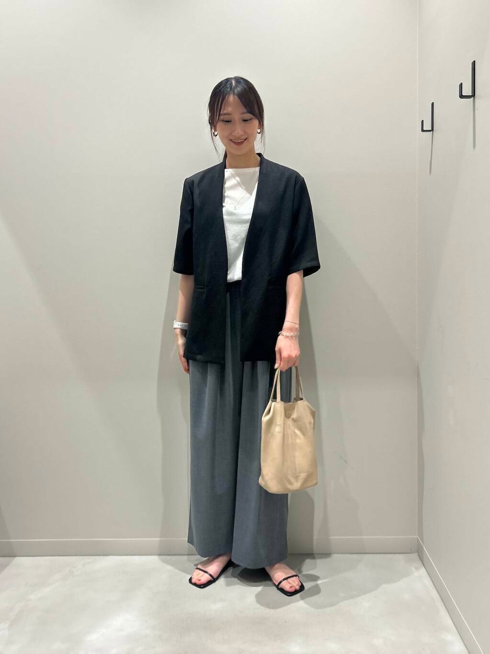 momoka(URBAN RESEARCH アミュプラザ博多)のその他パンツ「『3サイズ展開』『イージーケア』タックギャザーストレートパンツ」を使ったコーディネート