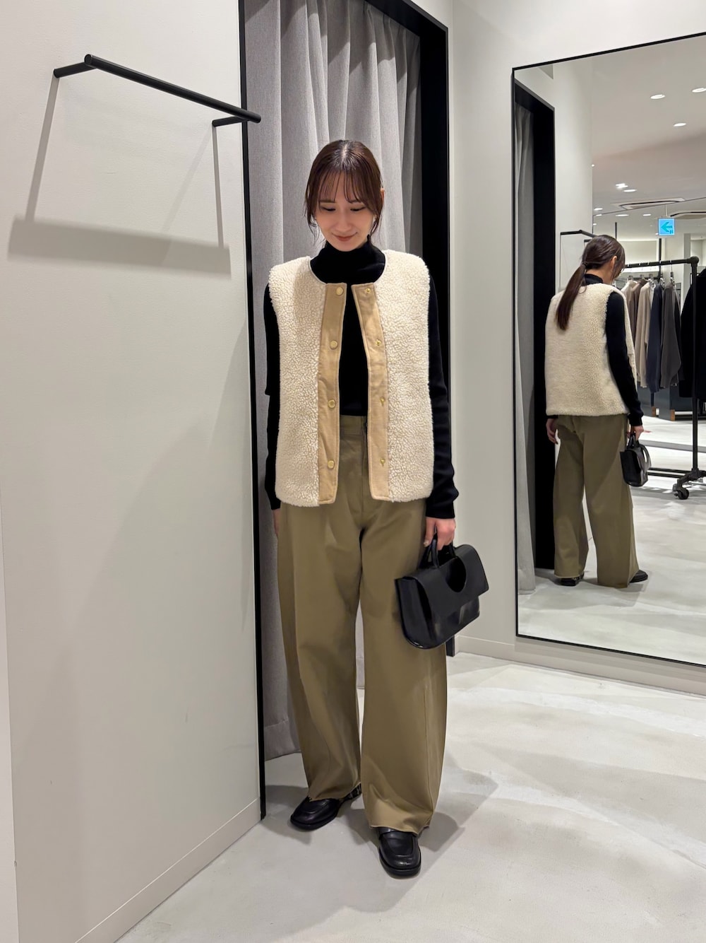 Borbourのボアベスト◎ 秋はニットやシャツの上に羽織ってアウターとして着たり、冬にはコートの中にも重ねて着れるのですごく万能アイテムです◎ 1枚着るだけで暖かくおしゃれなスタイリングに なります! ボトムにはカジュアルなパンツをチョイス◎ 小物や足元をレザーアイテムで揃えて 大人のカジュアルコーデにしました! お問い合わせの際はぜひURアミュプラザ博多店までお電話お待ちしております。 URBANRESEARCH アミュプラザ博多店 〒812-0012 福岡県福岡市博多区博多駅中央街1-1 アミュプラザ博多 4F TEL:050-2017-9010 営業時間:10:00~20:00 定休日:不定休