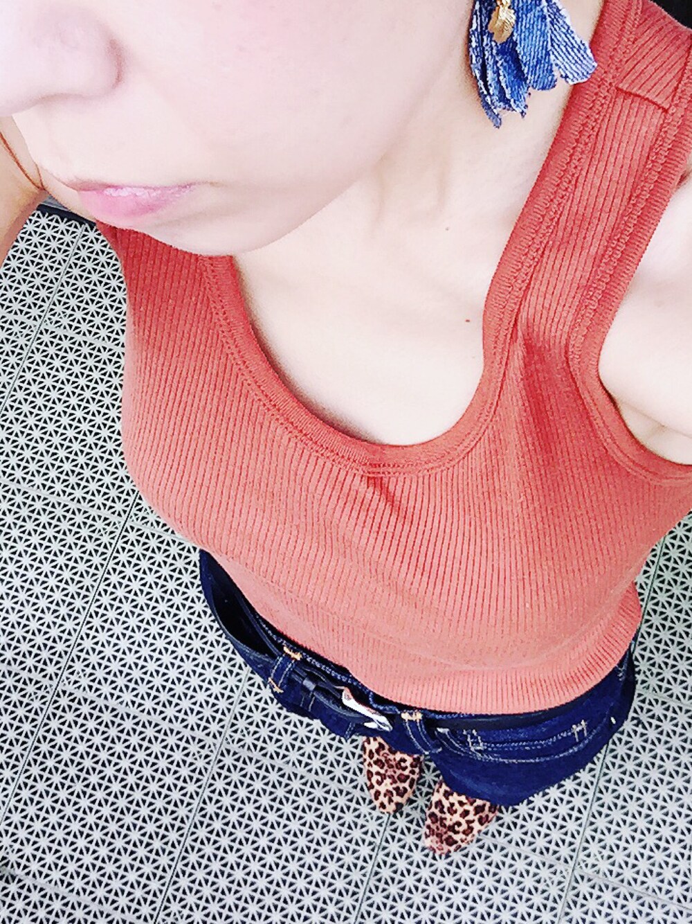 いつかの暑かった日のコーデ。 タンクのテラコッタとレオパードシューズで夏脱却感を精一杯だしてます🙈 デニムはワンサイズ下でもよかったかも。。 ハイライズが腰履きになりつつあるのでベルトで ハイライズにしてます😂 いいね、saveありがとうございます。 とても嬉しいです💖