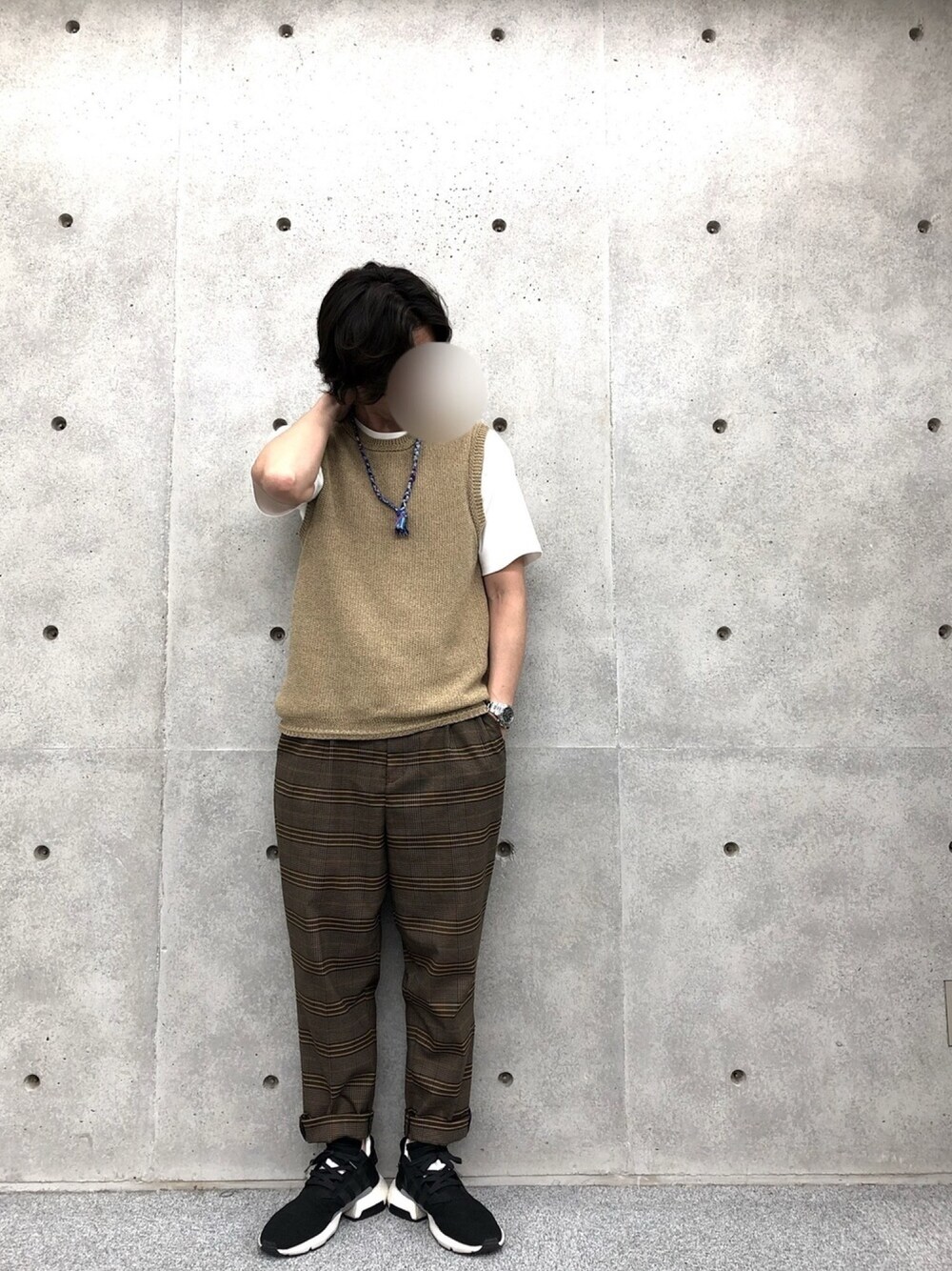 チェックパンツが可愛いニットベストスタイル。 カラーのバランスが難しいですね😅