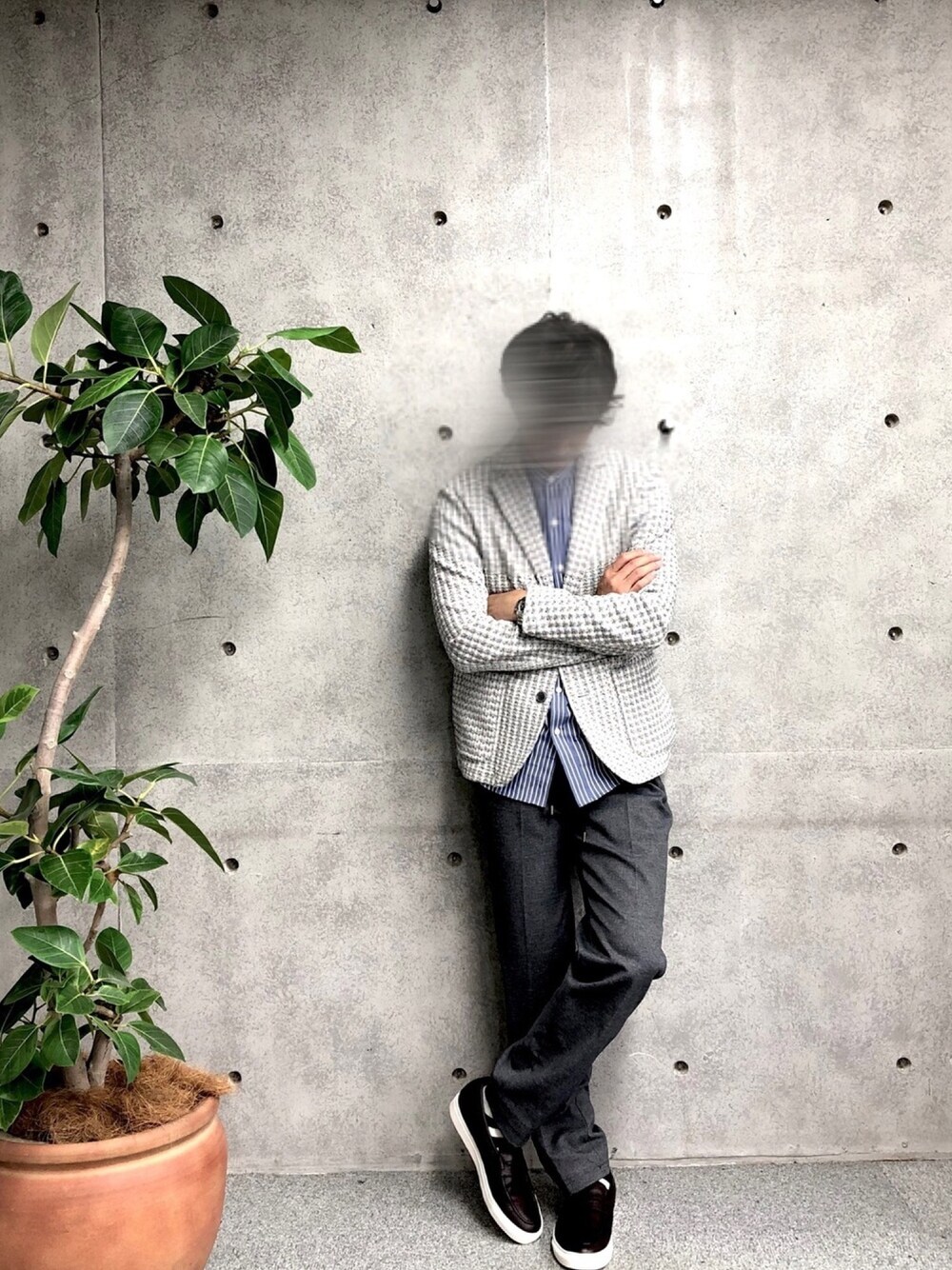 2ndbmのテーラードジャケット「ストレッチチェック柄カットジャケット」を使ったコーディネート