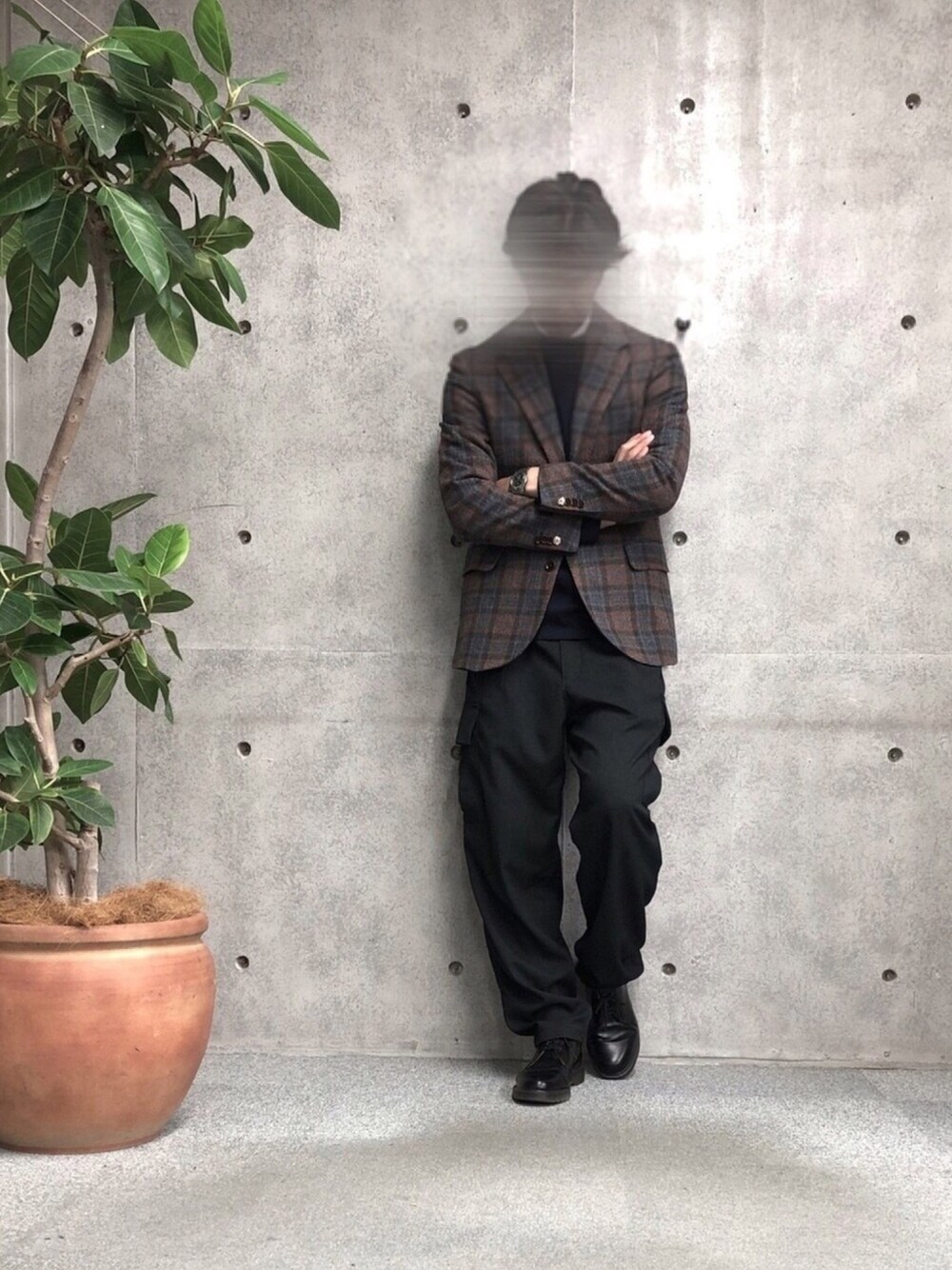 先輩から頂いたビンテージのジャケット。 今っぽく太めのボトムスに合わせてみました。 チャレンジングなスタイリングです。😅