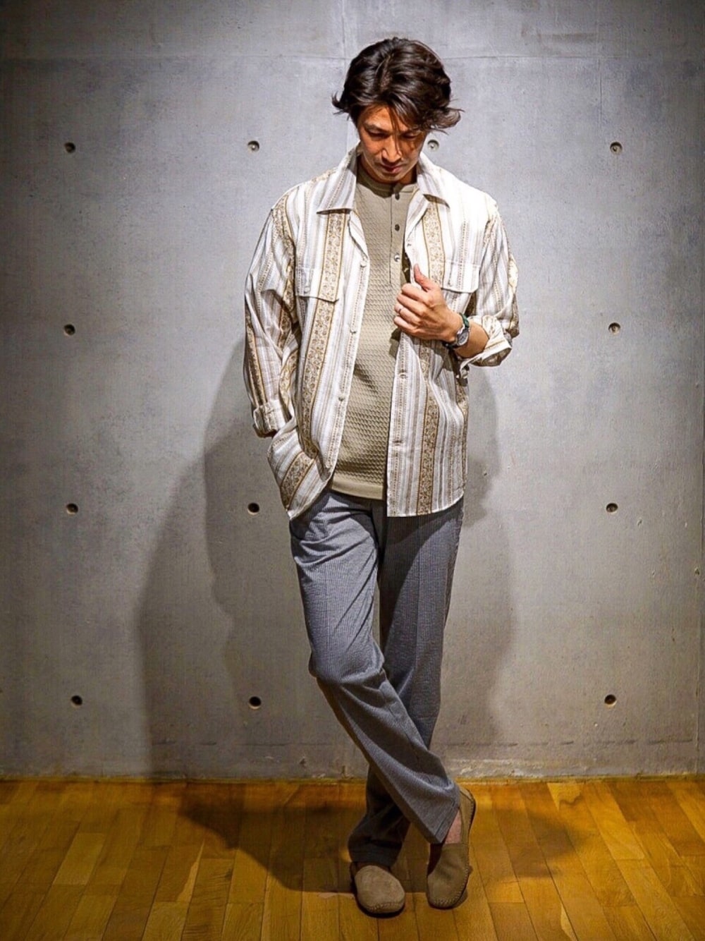 オープンカラーシャツスタイル⭐️ エレガントな大人スタイルが完成😆😆😆