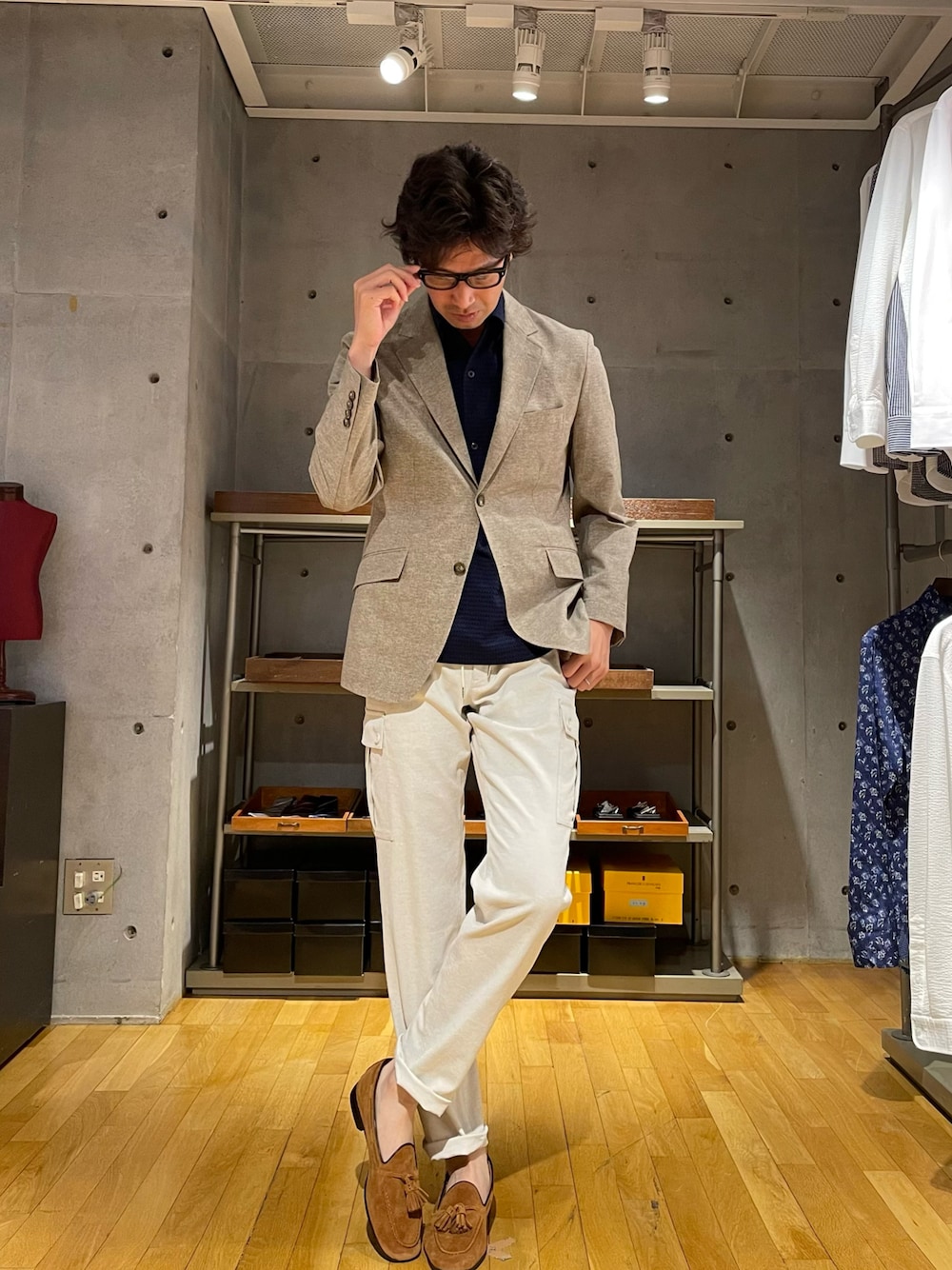2ndbmのテーラードジャケット「【COOL DOTS】メランジプリントジャケット」を使ったコーディネート