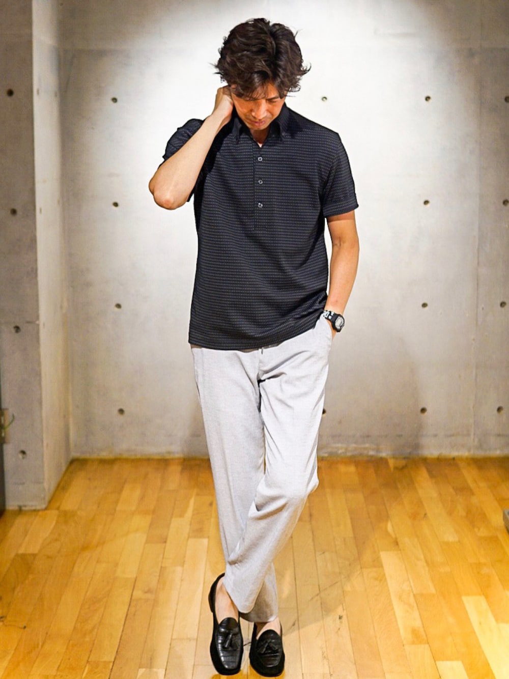 夏のBLACKスタイル。 私は1サイズ大きめに03(L)サイズを着用していますが、ジャストは02(M)サイズです!ご参考まで。