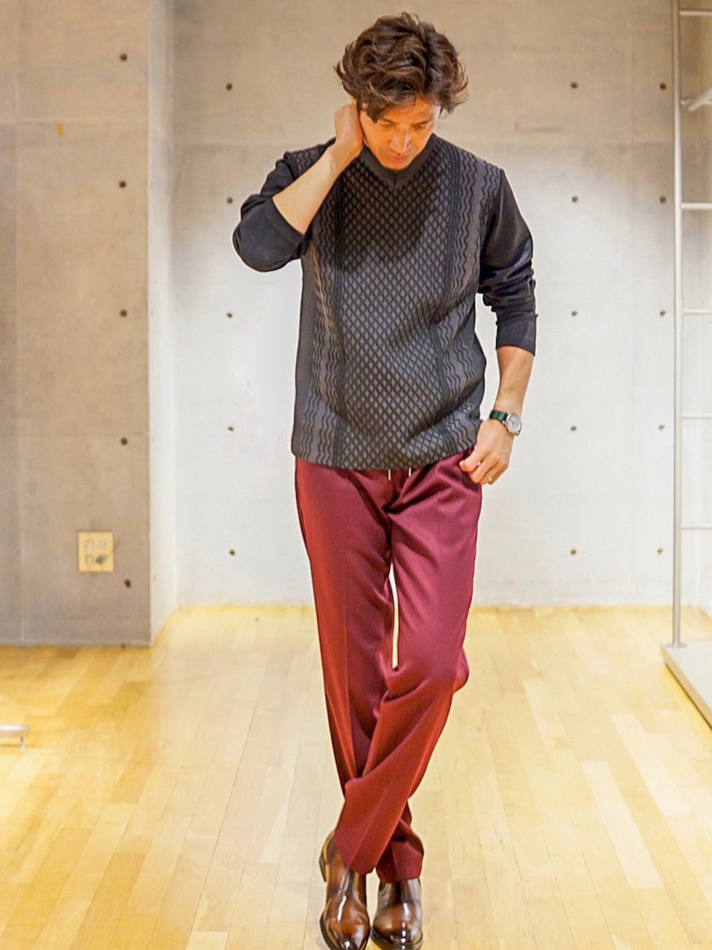 2ndbmのスラックス「ブライトサージストレッチパンツ」を使ったコーディネート