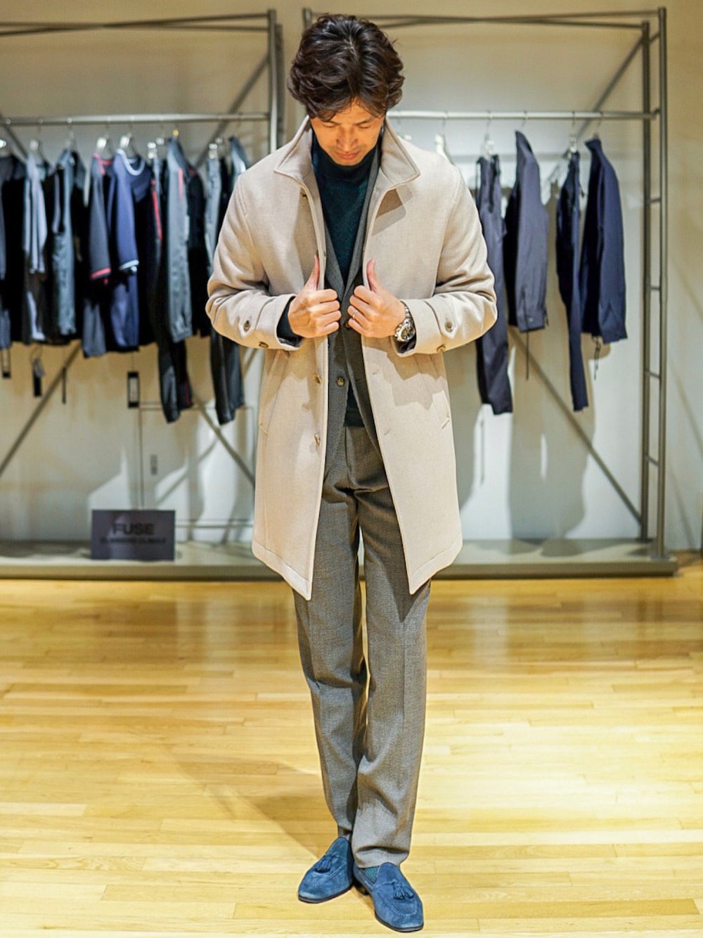 2ndbmのチェスターコート「Bellandi ファインウールメルトンコート」を使ったコーディネート