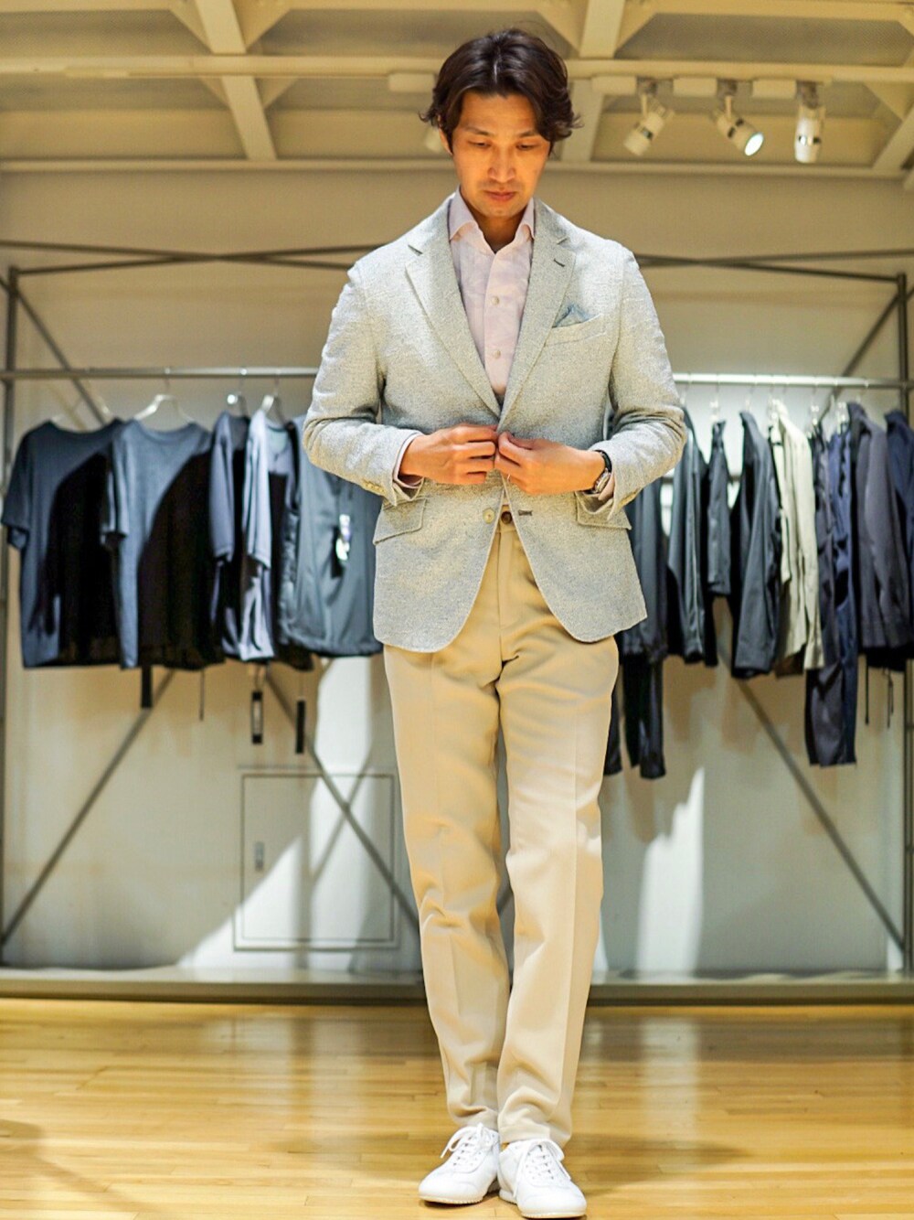 2ndbmのテーラードジャケット「麻調TRドライミックスメランジストレッチジャケット」を使ったコーディネート
