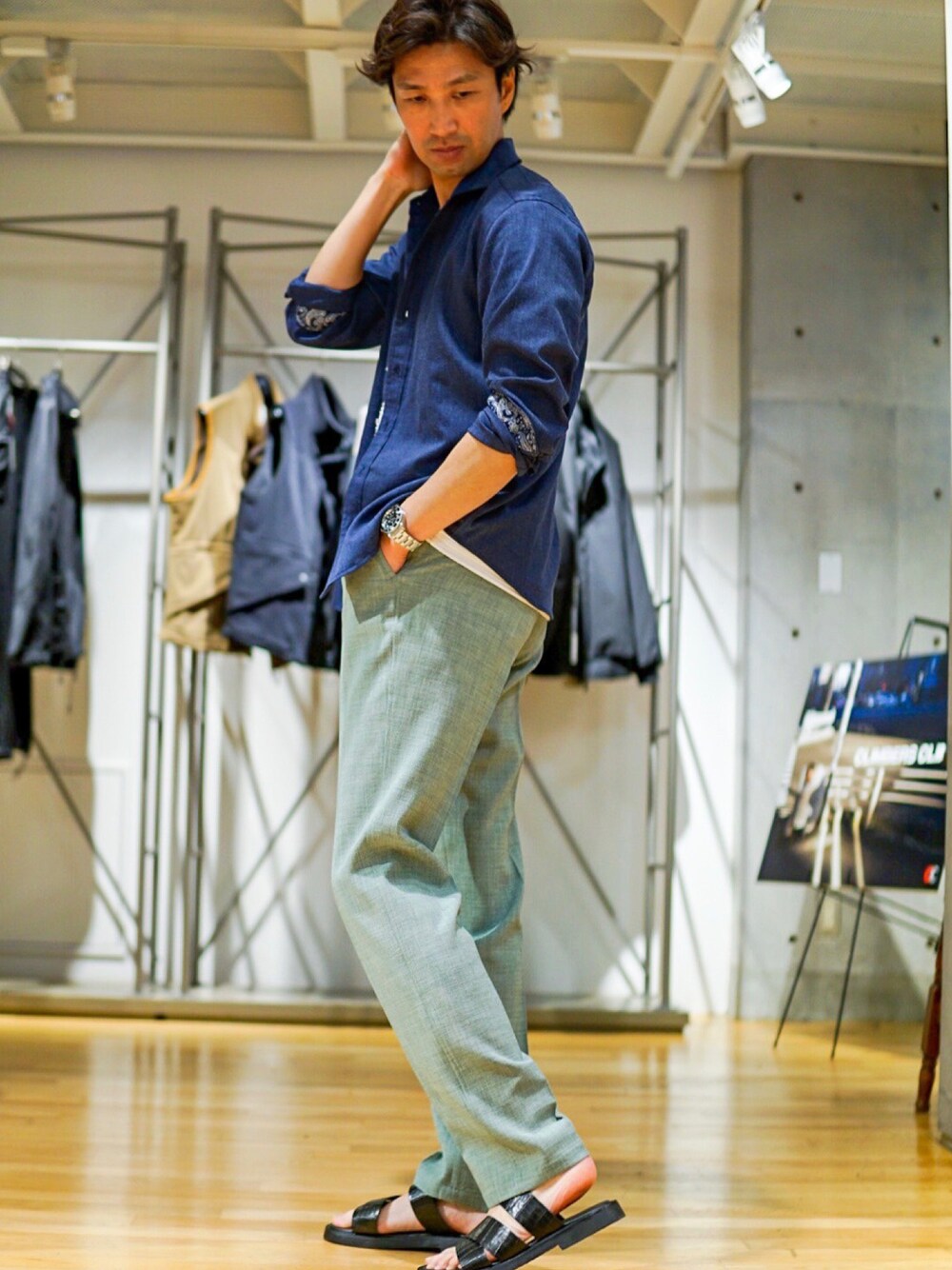 MENS BIGIのリゾートスタイル。 こんなスタイルで、避暑地をブラつきたいですね! 私は1サイズ大きめに03(L)サイズを着用していますが、ジャストは02(M)サイズです!ご参考まで。