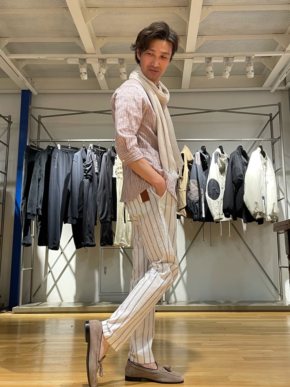 アースカラーのシャツスタイル。 リゾート気分♪ いつもご覧いただきありがとうございます。