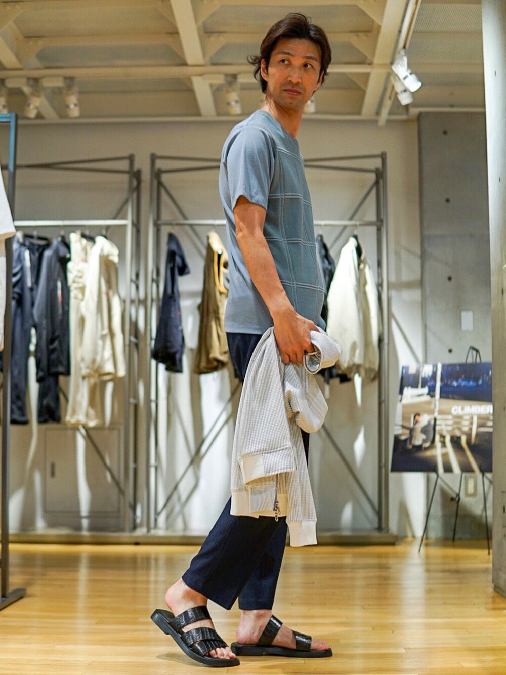 サックスブルーのTシャツスタイル。 ニット×カットソーのハイブリッドアイテム。 私は1サイズ大きめに03(L)サイズを着用していますが、ジャストは02(M)サイズです!ご参考まで。