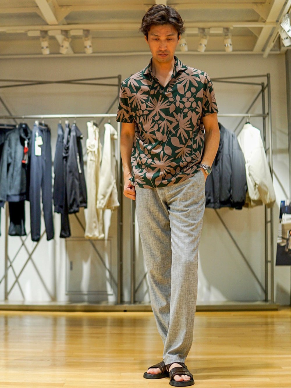 2ndbmのポロシャツ「フラワープリントスキッパーポロシャツ」を使ったコーディネート