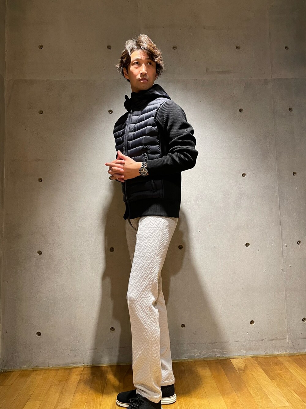 2ndbmのブルゾン「ハイブリッドダウンパーカ<ダウン×ニット>」を使ったコーディネート