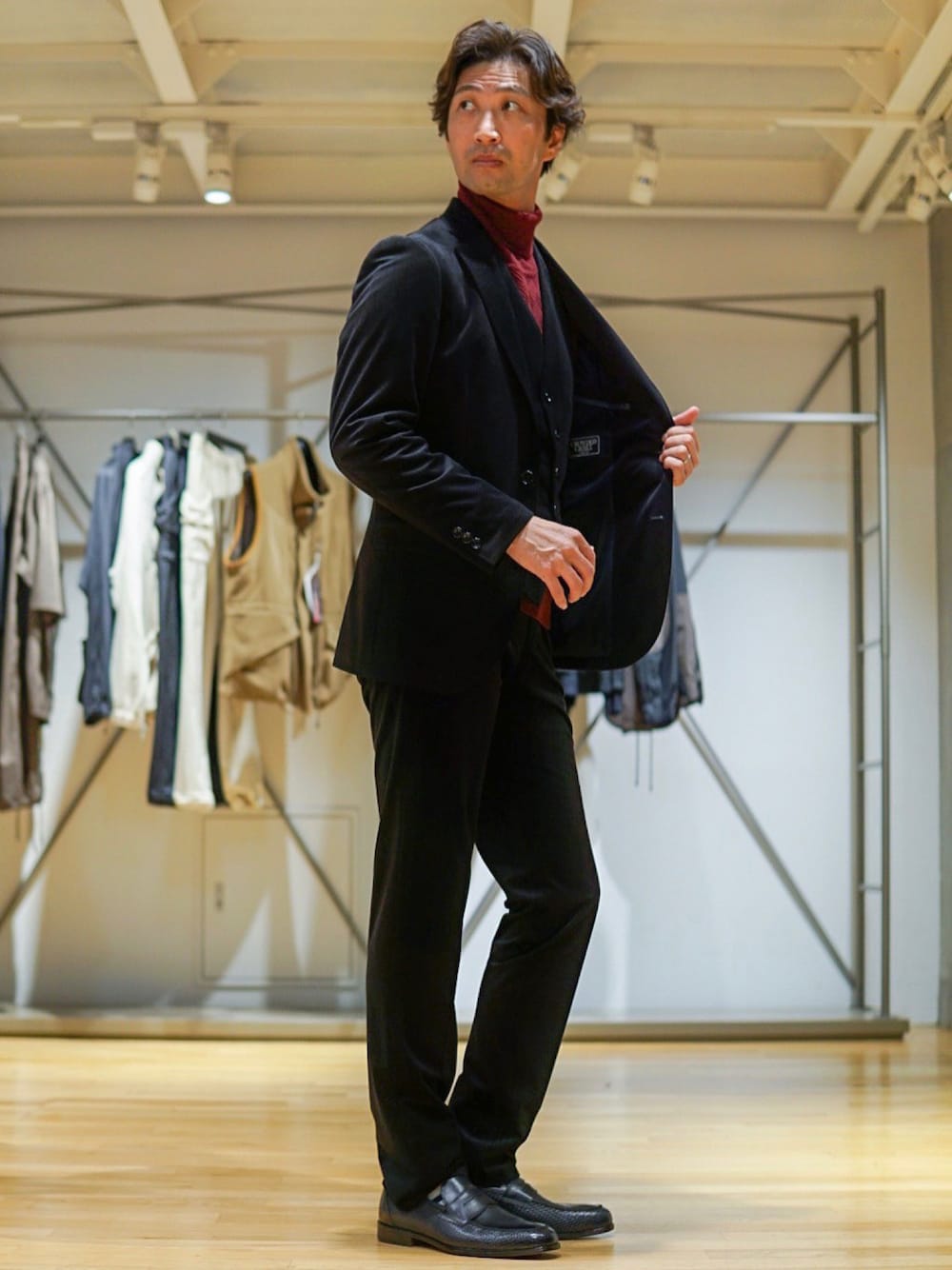 2ndbmのテーラードジャケット「ベロアジャケット/別売りセットアップパンツ、ベストあり」を使ったコーディネート