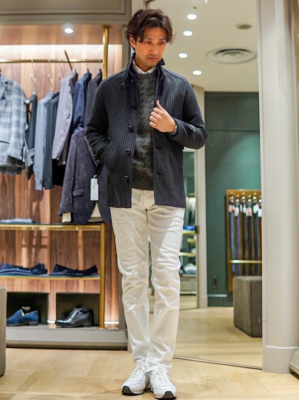 キレイめスタイルの定番、ホワイトデニムをボトムスに使用してみました〜♪ いつもご覧頂きありがとうございます♪