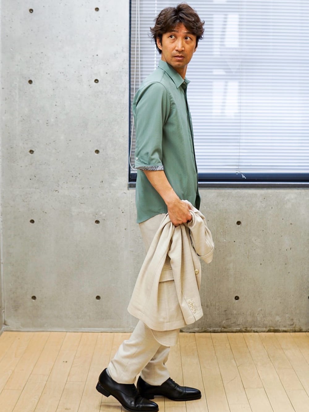 いつもご覧頂きありがとうございます♪ 淡いグリーンのカラーが魅力的なシャツ。 大人な休日スタイルです♪