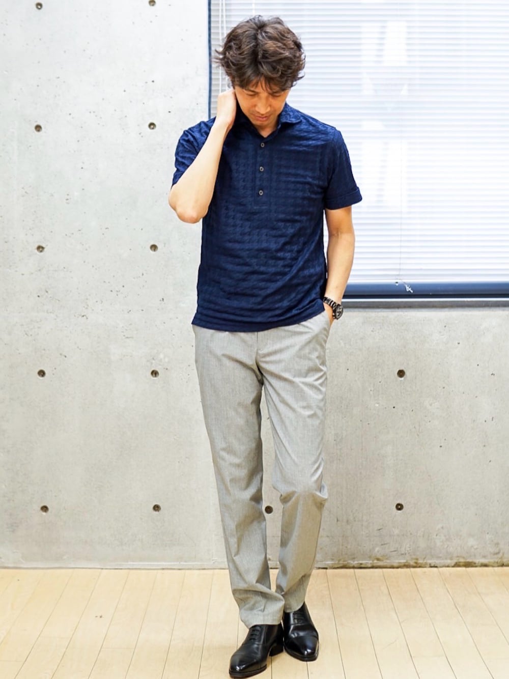 2ndbmのスラックス「<COOL DOTS>プリントスラックスパンツ(セットアップ対応)」を使ったコーディネート