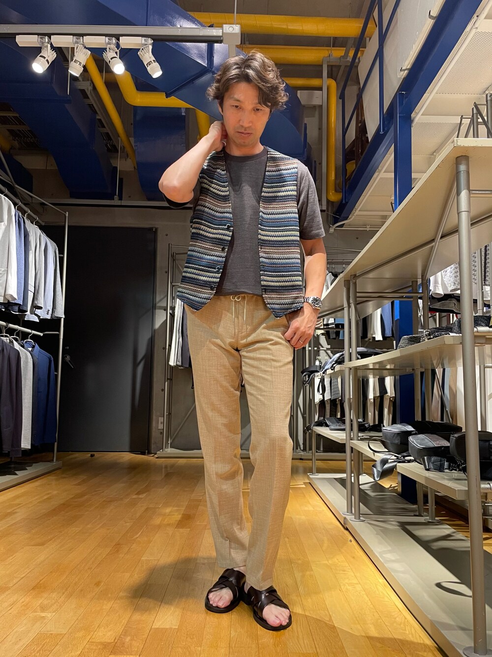 オリエンタルカラーのジレ。 エスニックな雰囲気もあり、単品力あるアイテムですから、合わせるアイテムはシンプルに。(^^) 私は1サイズ大きめに03(L)サイズを着用していますが、ジャストは02(M)サイズです!ご参考まで。