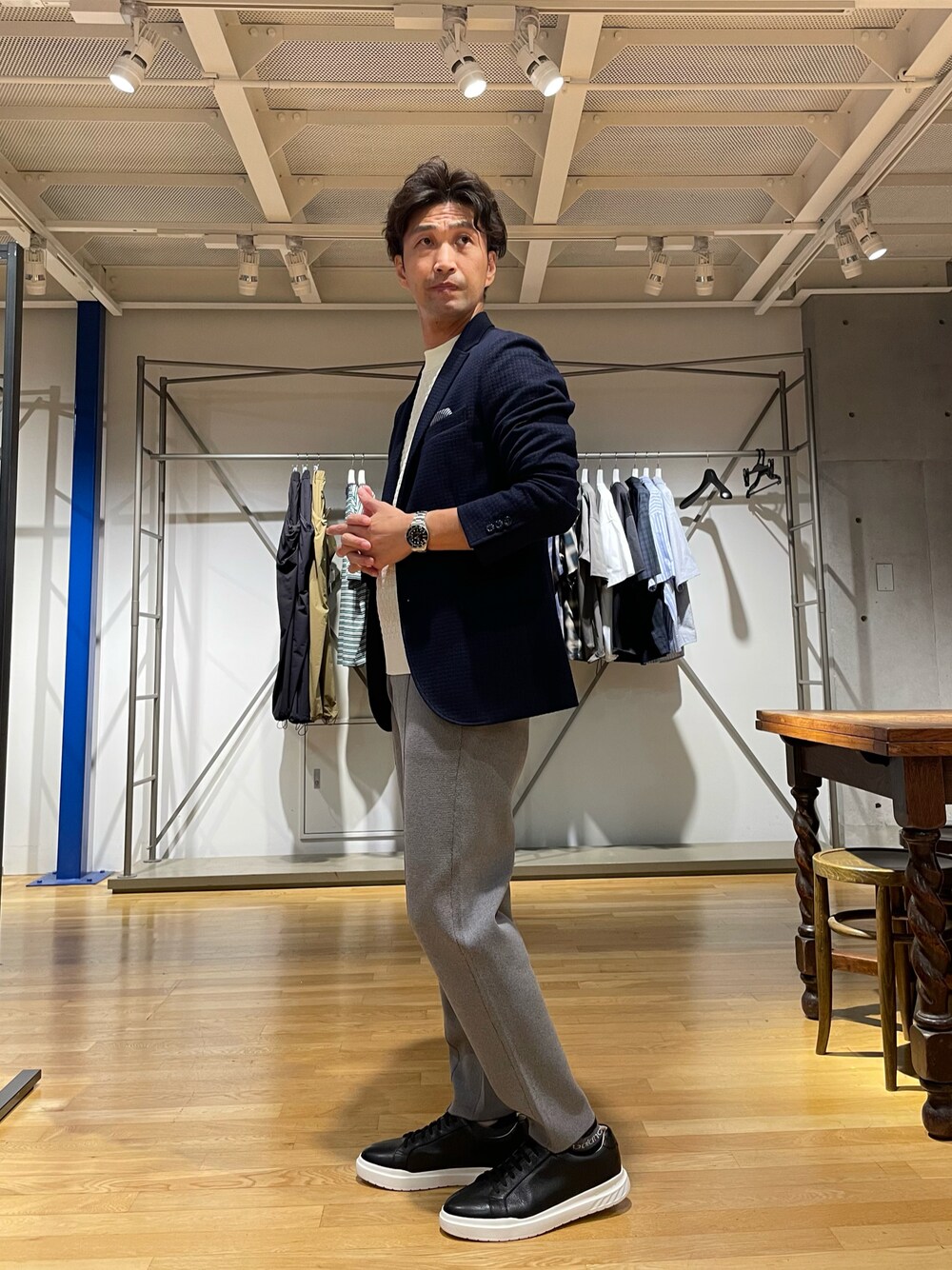 2ndbmのテーラードジャケット「3D千鳥格子ジャージジャケット」を使ったコーディネート