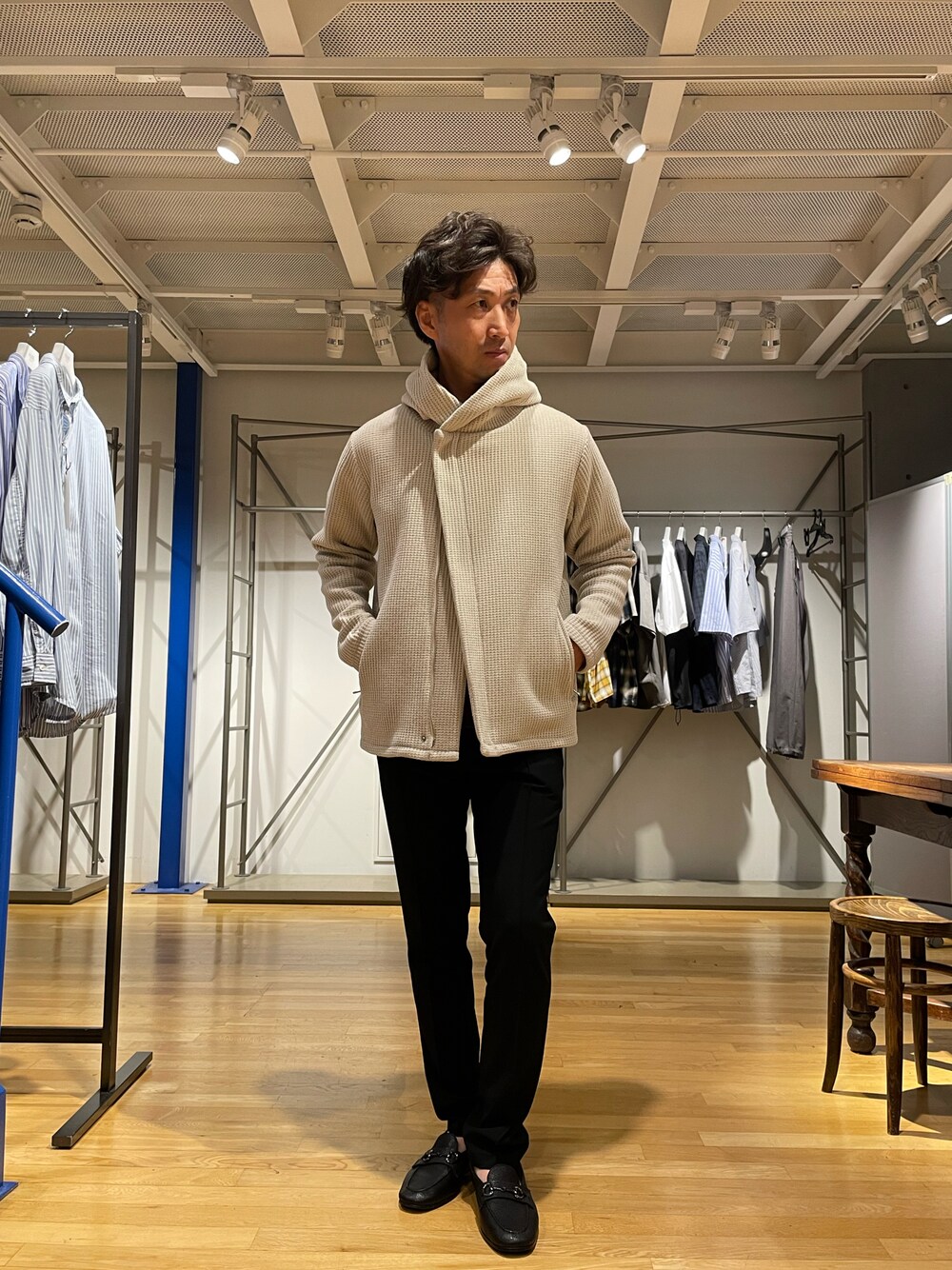 カットソー素材ですが防寒着としても活躍してくれるフードアウターです! オーバーサイズに着こなせるこのザックリ感がカッコイイ!^_^