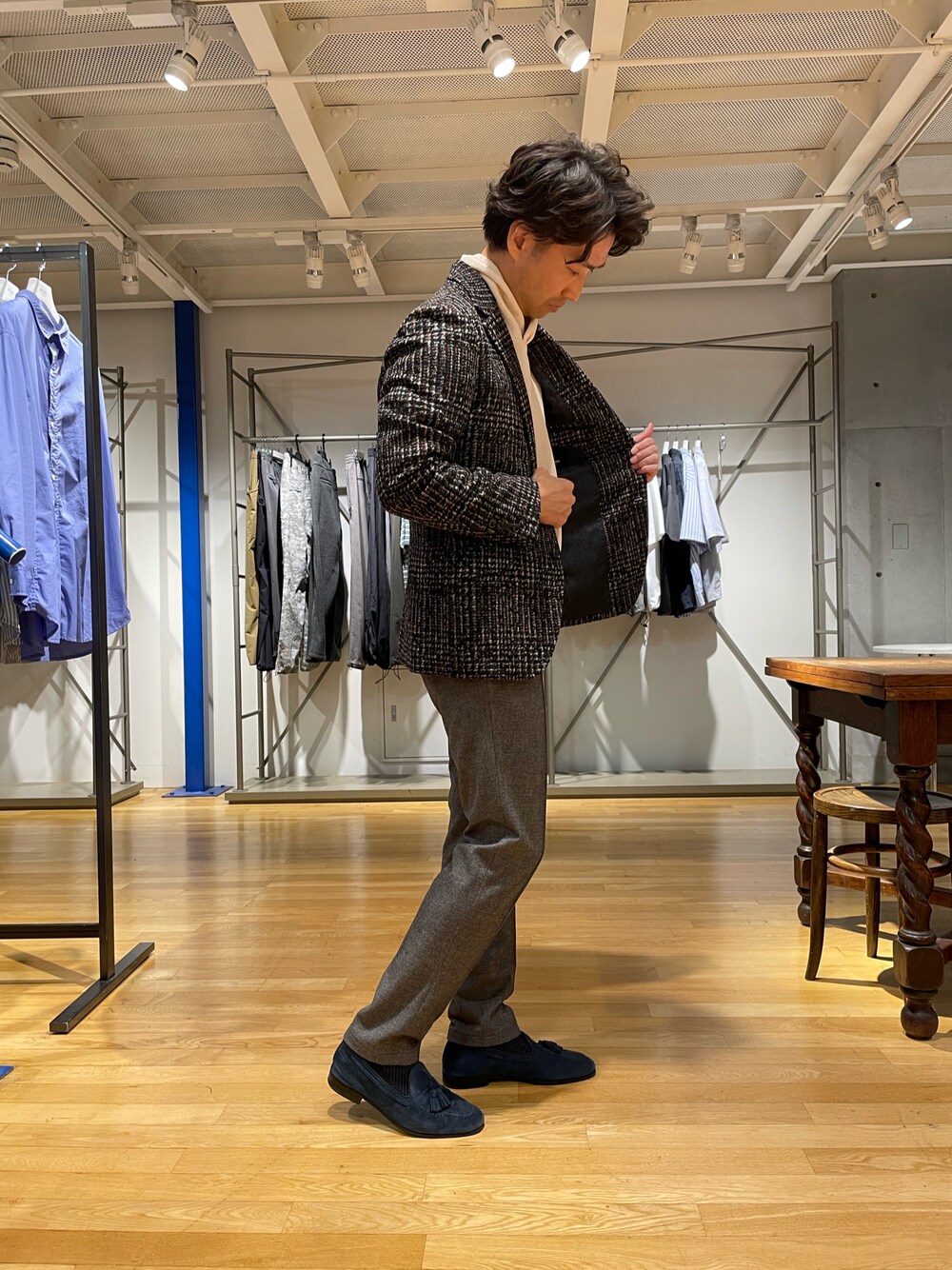 こんなテイラードなジャケットもインナー次第でカジュアルに。 オシャレは楽しいですね♪😃