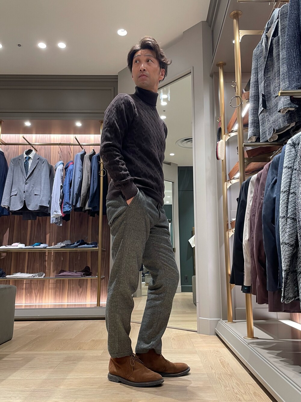 2ndbmのニット/セーター「5ゲージスノー加工ケーブルタートルネックセーター」を使ったコーディネート