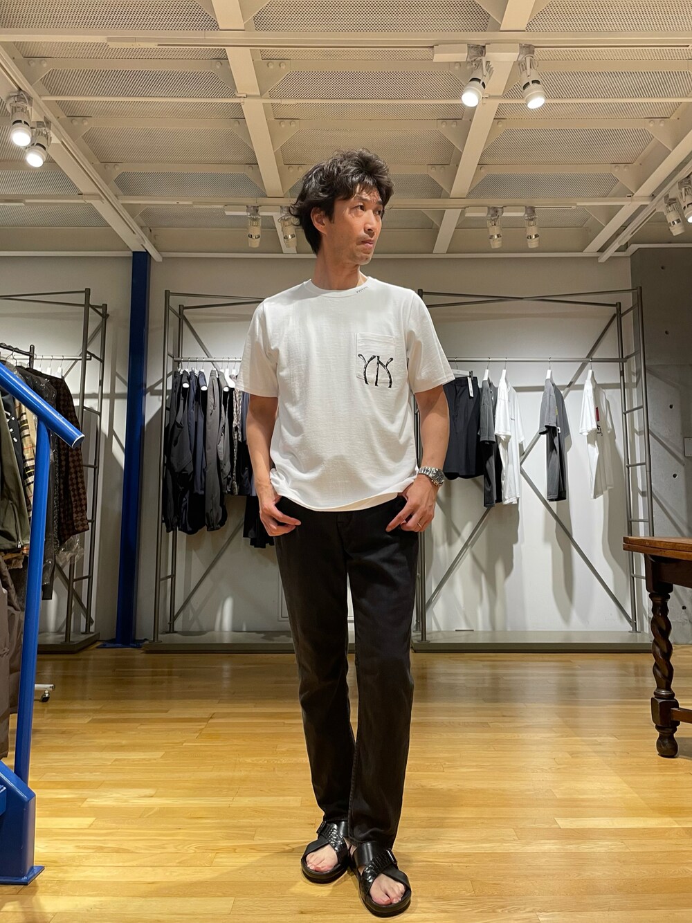 胸ポケットのプリントと首元刺繍のデザインは、MEN'S BIGIだけのexclusiveです! ワントーンで大人カジュアルを。