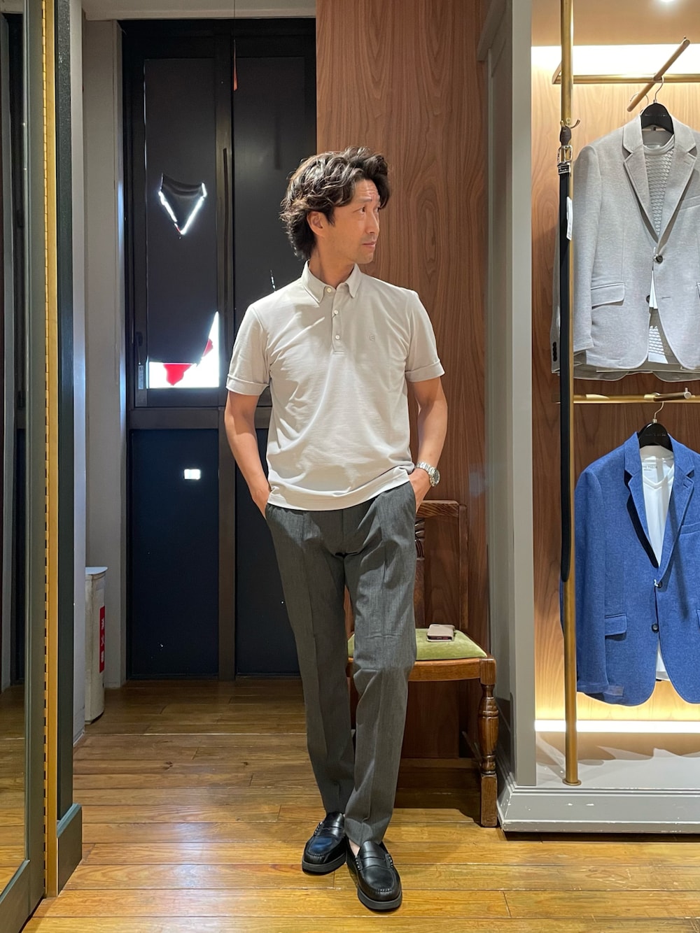 MEN'S BIGIがコールハーンとタッグを組んだexclusiveのポロシャツスタイル。 良く見ると、通気口のあるメッシアイテム。 昨今の流行りの素材です!