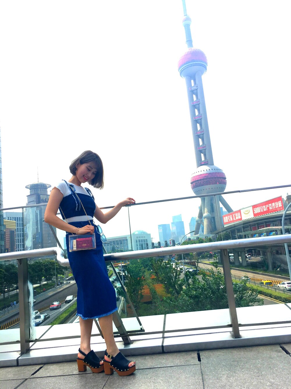 デニムで統一!ポイントはクリアバッグとさりげなく写ってるカラーサングラス🕶 景色がいいと洋服も映えるな〜😊