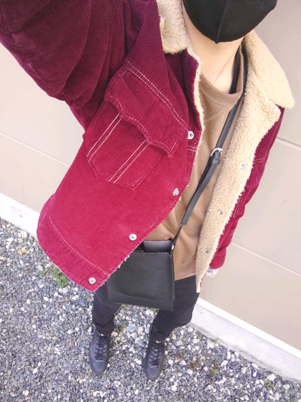 ワインレッドにベージュでシックにきめました アウター:古着 80年代 スウェット:GU パンツ:アーバンリサーチ