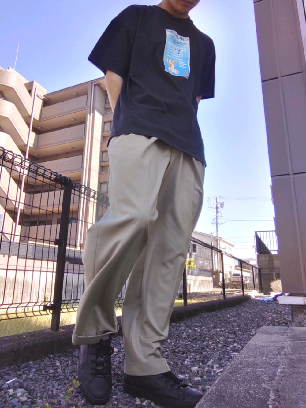 古着て最高だよね シャツ:80年代の服かな?胸にはギズモが描かれており、めちゃかわです たぶん当時の映画の記念Tシャツかな? パンツ:スラックスはBrooksBrothers