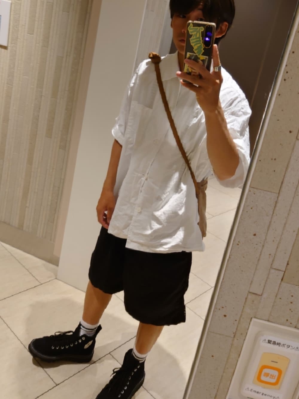 オーバーサイズのGUかわいい 足元のコンバース目立たせたいからハーフパンツ