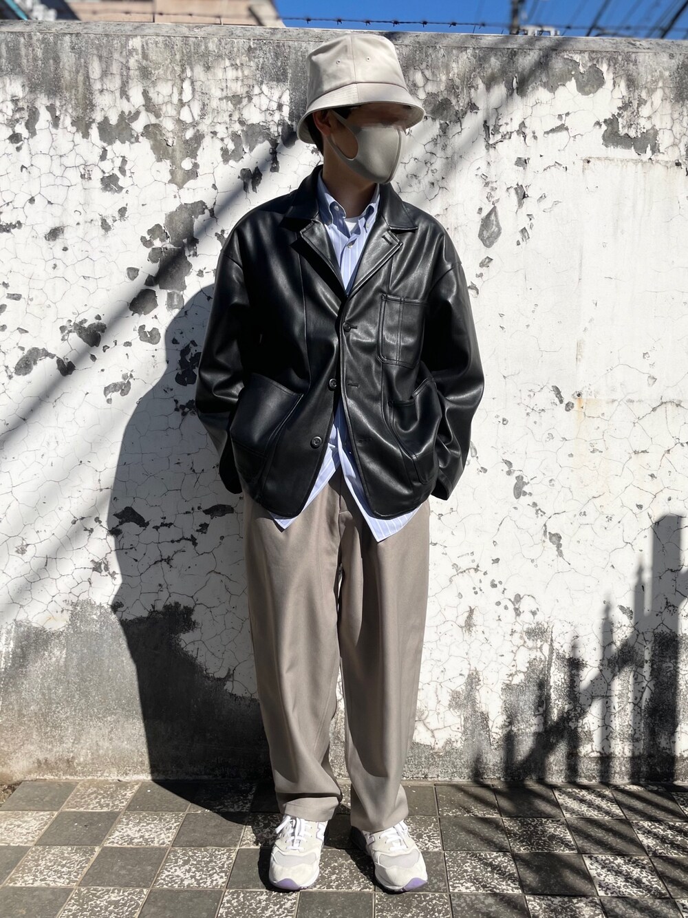 いつもいいねやお気に入りありがとうございます🐶 リンクコーデアカウント・Instagramもやってます📷 ◾️リンクコーデ【@kkkoheiii】 ◾️Instagram【@mokolink】 そちらにもぜひ遊びに来てください🥺 ----------------------------------------------------- ✔️カジュアル×レザージャケット シャツやスニーカー、バケットハットなどカジュアルなコーデに、きれいめなレザージャケットを合わせてみました! レザージャケットによって全体的に引き締まった印象になるので、パンツはワイドパンツでラフに◎ シャツはブルーのストライプ柄で清潔感とカジュアルさをプラスしてきれいめカジュアルに整えました✨ ジャケットのボタンは閉じないか一個だけ留めるくらいが、抜け感がでてかわいいです🎩 🙋♂️身長164cm/足26.5cm