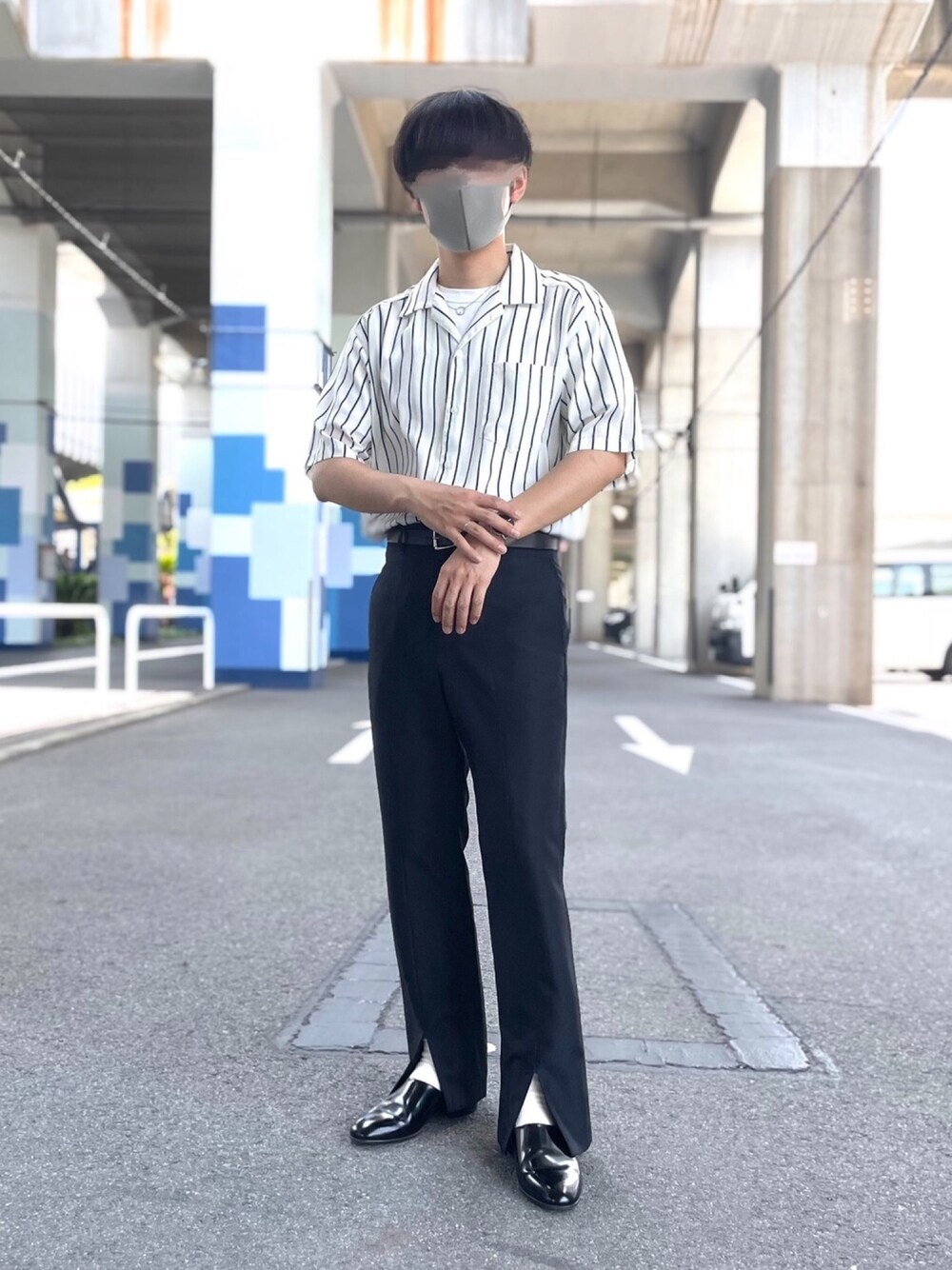 いつもいいねやお気に入りありがとうございます🐶 リンクコーデアカウント・Instagramもやってます📷 ◾️リンクコーデ【@kkkoheiii】 ◾️Instagram【@mokolink】 そちらにもぜひ遊びに来てください🥺 ----------------------------------------------------- ✔️きれいめリゾートスタイル 今回はストライプのオープンカラーシャツを使って、涼し気なリゾートファッション風のきれいめコーデをしてみました😎🏖 オープンカラーシャツのインナーには、白Tシャツがおすすめです✨ 空いている首元から白を見せると、きれいめなコーデに抜け感と清潔感を出すことができます! 夏は涼しげなシルバーのアクセサリーもいいですね! 今回はスリットの入ったフレアパンツを履いているので、ソックスも白にして抜け感を出すようにしています! スリットから見える白が、裾の広がるフレアパンツの重さを軽く見せてくれます◎ かなりきれいめに寄っているようなときは、抜け感を出してあげるとこなれたスタイルが作れます✌ 🙋♂️:身長164cm/足26.5cm