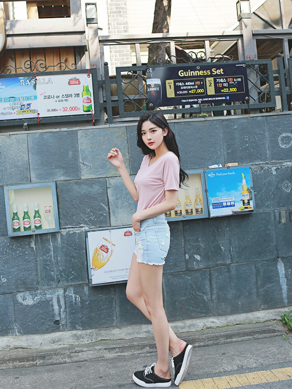 2perのデニムパンツ「ダメージポイントスリムデニムショートパンツ」を使ったコーディネート