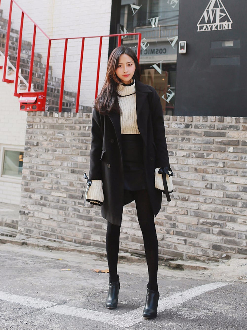 2perのムートンコート「ベーシックダブルボタンミディアムコート(P0000EPO)」を使ったコーディネート