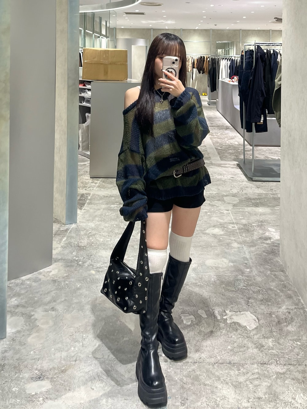 misaki(WHO'S WHO gallery広島パルコ店)のニット/セーター「ワイドボーダーメッシュニット」を使ったコーディネート