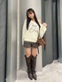 misaki(WHO'S WHO gallery広島パルコ店)のニット/セーター「シャギーロゴオフショルニット」を使ったコーディネート