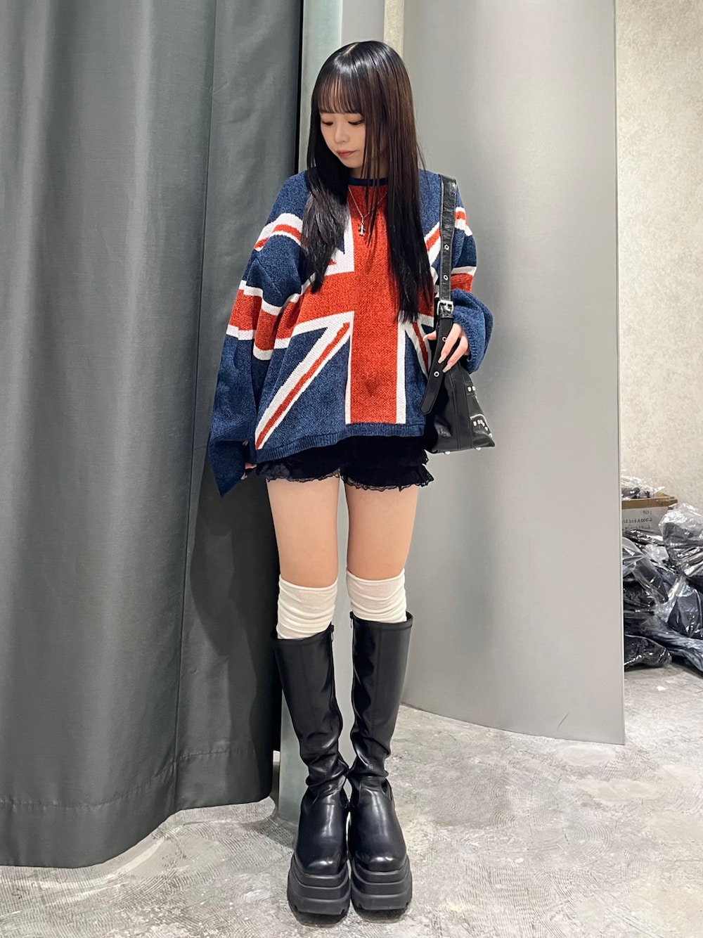 misaki(WHO'S WHO gallery広島パルコ店)のニット/セーター「ユニオンジャックニット」を使ったコーディネート