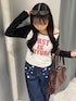 misaki(WHO'S WHO gallery広島パルコ店)のTシャツ/カットソー「スタースタッズラグランロゴトップス」を使ったコーディネート
