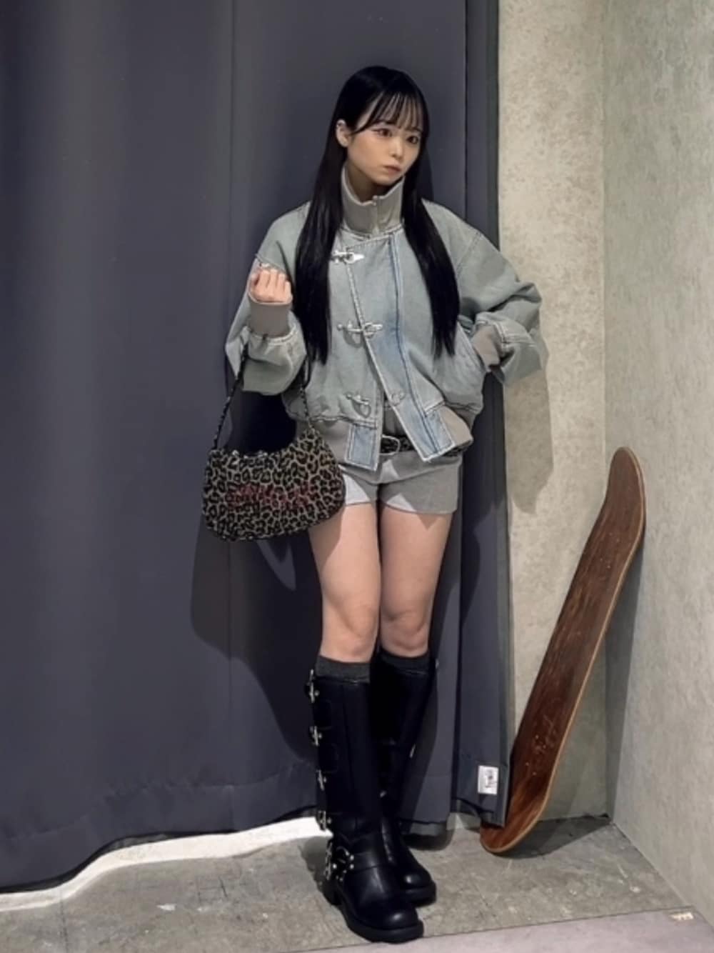 misaki(WHO'S WHO gallery広島パルコ店)のブルゾン「ファイヤーマンショートブルゾン(フェイクレザー/デニム)」を使ったコーディネート