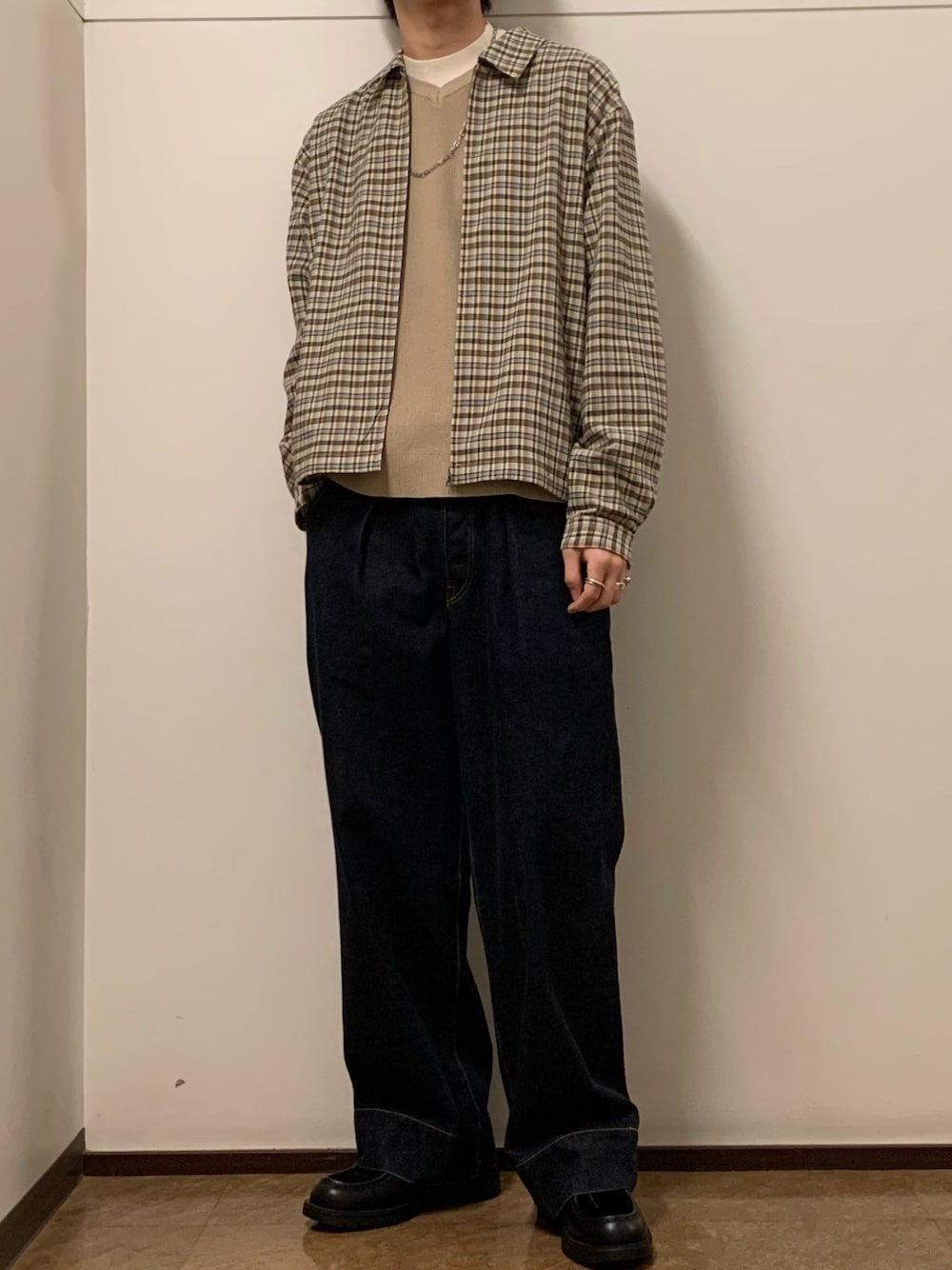 【プロフのURLから詳細・購入が可能です】 ワイドのデニムパンツ使ったキレイめスタイル! リングとかネックレスの小物で雰囲気だしてます!