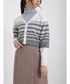 アシンメトリーな切り替えデザインが特徴のフレアスカートにボーダーカーディガンを合わせております◎ カットソーを中に合わせると今年らしいコーディネートになりオススメです◎
