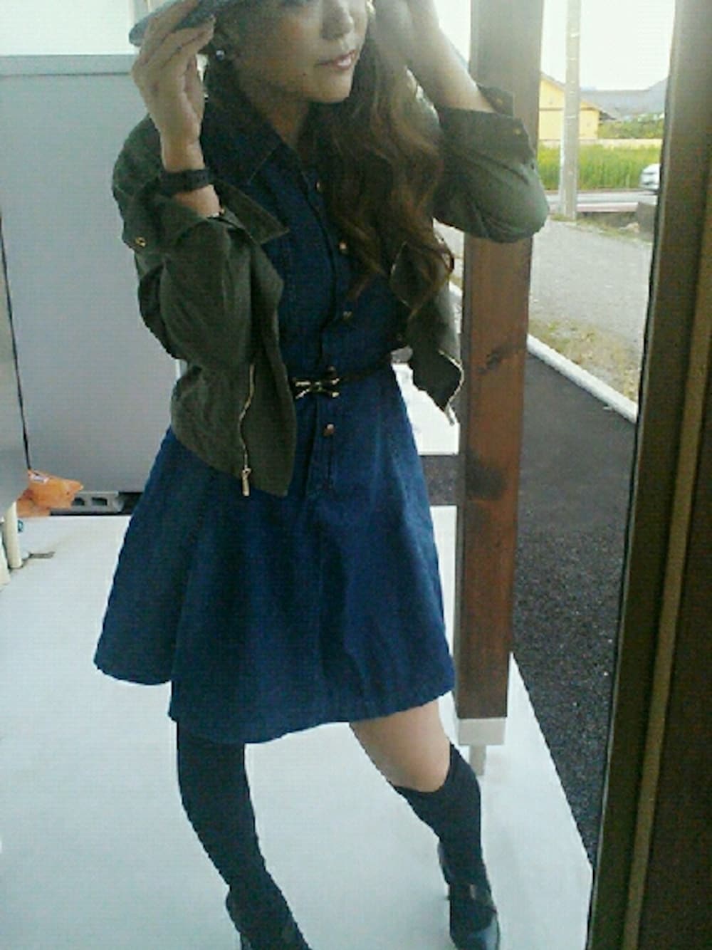 本日もお仕事スタイル。 今日ゎ、珍しく、女の子スタイル♬ ワンピースo,+:。☆.*・+。 レアすぎる(笑) ミリジャケ着て、カッコ可愛く♥ 毎日、おしゃれできるの楽しいね・。♪*+o 明日ゎ何着よっかなぁー??
